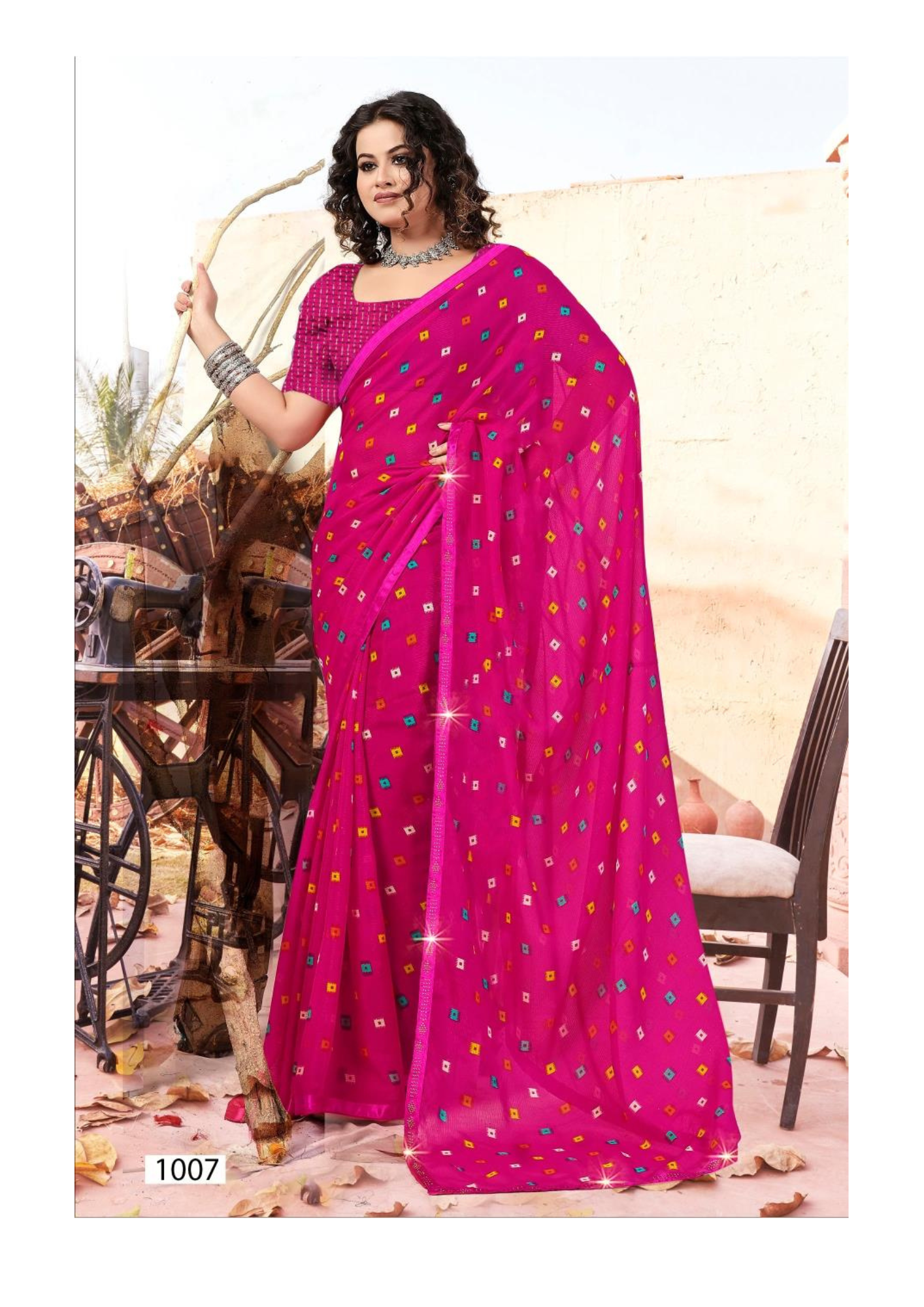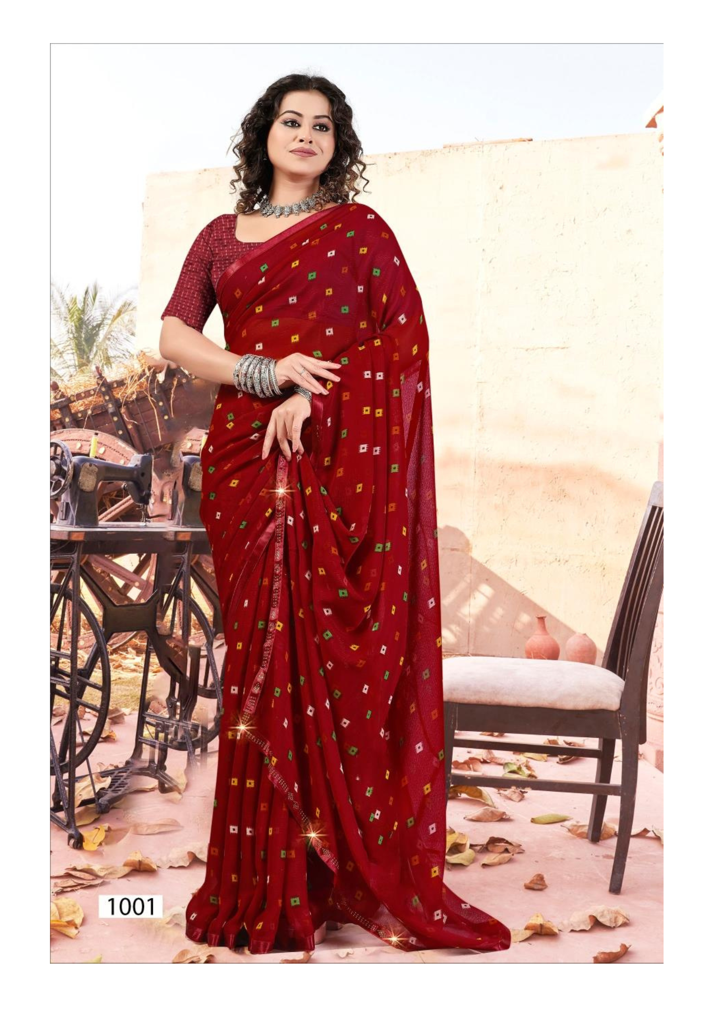 Grace your wardrobe with this elegant maroon saree featuring multicolor square prints. Lightweight, stylish, and perfect for festive or casual occasions. Includes matching blouse piece.